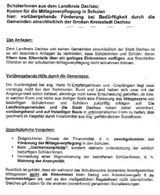 Das soll die Information zum Thema Mittagstisch für bedürftige Kinder sein. Wer soll denn das bitte verstehen? Bestimmt hätte sich die Verwaltung genauso wenig bemüht, wenn es um die Verpflegung verarmter Bankmanager ging.