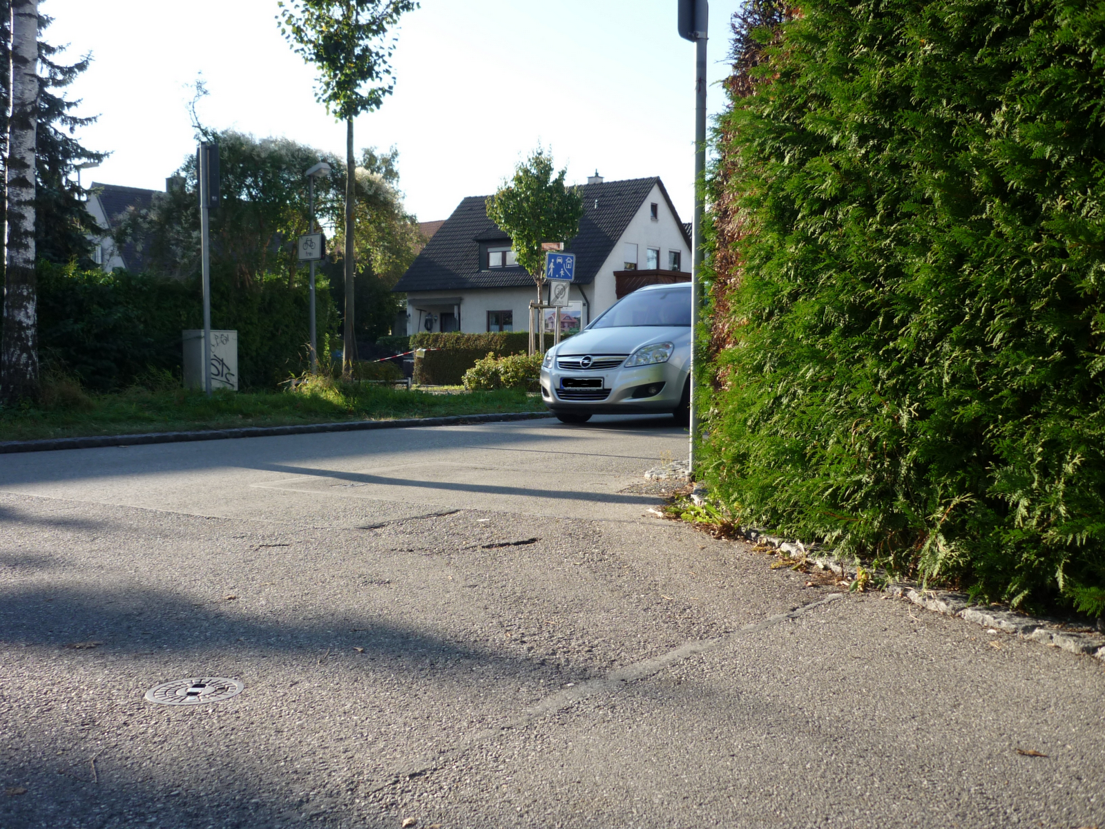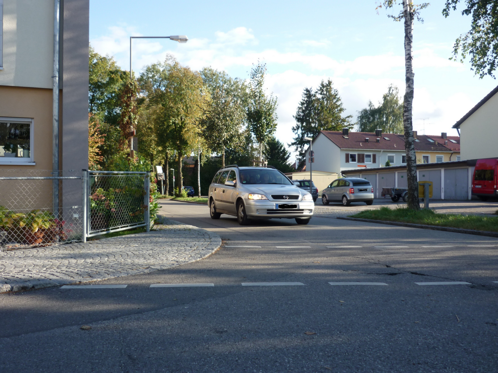 1. Aufgrund der örtlichen Gegebenheiten – eine sehr lange gerade Straße – wird die bestehende Geschwindigkeitsbegrenzung auf 30 km/h nur unzureichend einge-halten. Gleichzeitig wird die Straße immer mehr als Schleichweg zum Park&Ride Parkplatz am S-Bahnhof und zur Unteren Stadt genutzt. Obwohl es sich um eine reine Anliegerstraße handelt nehmen wir ein hohes Verkehrsaufkommen mit geschätzt ca. 4000 Fahrzeugen / Tag zudem mit hohen Geschwindigkeiten wahr.