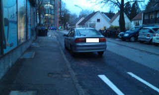 Konsequenz für die Kinder: Sie fahren um das Auto herum und befinden sich dann in mitten der Grubenstraße, während aus der Martin-Huber-Straße PKWs einbiegen und die Kinder erst im letzten Moment wahrnehmen.