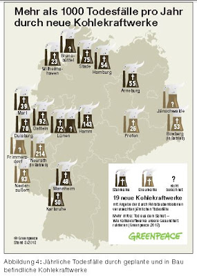 Zum Vergleich: Das bestehende, wesentlich kleinere STEAG-Kraftwerk verursacht lt. der Greenpeace-Veröffentlichung „bloß“ 23 Todesfälle pro Jahr, 250 verlorene Lebensjahre und 5.302 verlorene Arbeitstage (siehe S. 21, Tabelle 4).