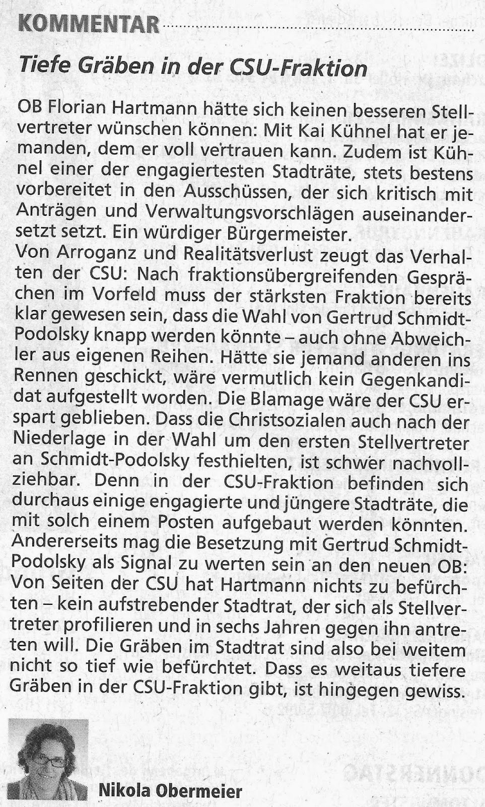 Die Dachauer Nachrichten / Münchner Merkur berichten heute über den Ausgang der Bürgermeisterwahl.