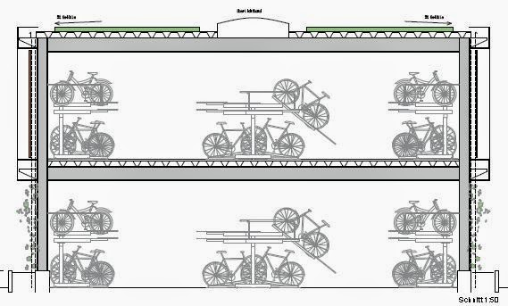 In der Bauausschusssitzung am 24.06.14 wurde der Entwurf zur Radhalle auf der Bahnhof-Ostseite einstimmig beschlossen. Das zweigeschossige Gebäude wird mit „Doppelparkern“ ausgestattet. Ein abgetrennter Bereich für Mofas und Mopeds soll integriert werden.