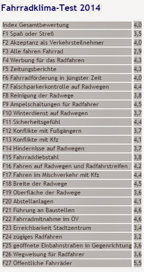 Die beste Note bekommt noch die tapfere Bevölkerung mit der Schulnote 2,9 (alle fahren Fahrrad).