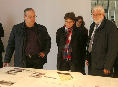 | Bürgermeister und Oberbürgermeister, sowie MdL Martin Güll bei der Ausstellung Nandor Glid in der KZ-Gedenkstätte |