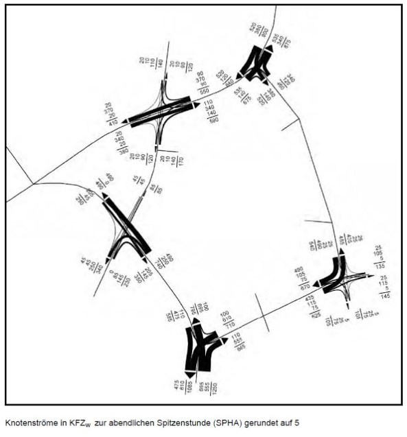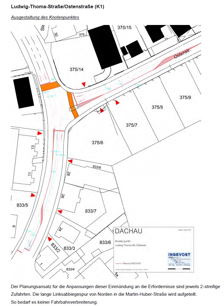 Das Ergebnis ist, mit einer Rechtsabbiegespur in die Ostenstraße könne eine ausreichende Leistungsfähigkeit hergestellt werden. Es ist für uns völlig unverständlich, dass bei der Untersuchung mit dem völlig ungeeigneten Bestand (Fußweg, Radfahrer frei) geplant wird.