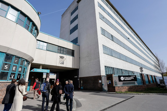 1929 wurde die Tabakfabrik vom Stararchitekten Peter Behrens – einem der Mitbegründer des Deutschen Werkbundes – in der Tradition der Neuen Sachlichkeit im Auftrag Österreichs errichtet. Fast 40.000 Quadratmeter Fläche mit Industrieanlagen in einem Gesamtkonzept, von den Fließen und Beschriftungen der Flure und Türen bis hin zum 226 Meter langen, leicht geschwungenen Hauptgebäude, einer Stahlskelettkonstruktion, deren Säulenhallen den Eindruck der Unendlichkeit vermitteln.