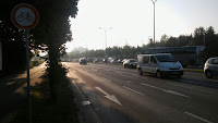 Jetzt bin ich aber abgeschweift. Der nächste Stau wartet nach einer schönen Fahrt durch das Moos und am Rangierbahnhof entlang an der Triebstraße/Frankfurter Ring. Auch der Stau ist km-lang. Wir erinnern uns, wenn man vom Dachauer Hinterland über den Nord-Ost-Umwegsstau und Anschlussstellen Ludwigsfeld Stau zur BMW, Knorr, FIZ usw. will, dann landet man ..richtig.. im Triebstraßenstau -ziemlich zuverlässig, jeden Tag.