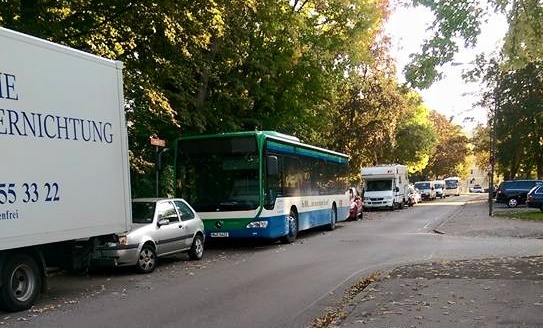 Sonntag 16.10.2016 – Leipziger Straße, der MVV hat mit seinem dezentralem Konzept der Lagerung von Betriebsmittel beim Kunden ein innovatives Konzept entwickelt, das inzwischen schon Vorbildfunktion für die Privatwirtschaft darstellt. Gleich 50m weiter, direkt vorm Kindergarten St. Hildegard, ist ein Fahrzeug eines Karlsfelder Bus- Unternehmens abgestellt. Die Dachauer Anwohner freuen sich natürlich darüber, denn jetzt wissen sie, dass sie in Zukunft komplett auf ihr Auto verzichten können, denn der Bus parkt jetzt vor der Haustür. Eine Parkplatzsuche erübrigt sich komplett. Die Stadtwerke Dachau wollen dieses Konzept (noch?) nicht übernehmen, obwohl sich das Dachauer Busdepot als gesuchter Gewerbegrund sicherlich sehr gut vermarkten ließe.