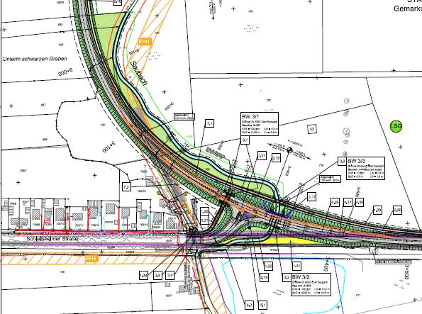 Hier der neue Entwurf des Anschlusses der geplanten Ostumfahrung an die Schleißheimer Straße.