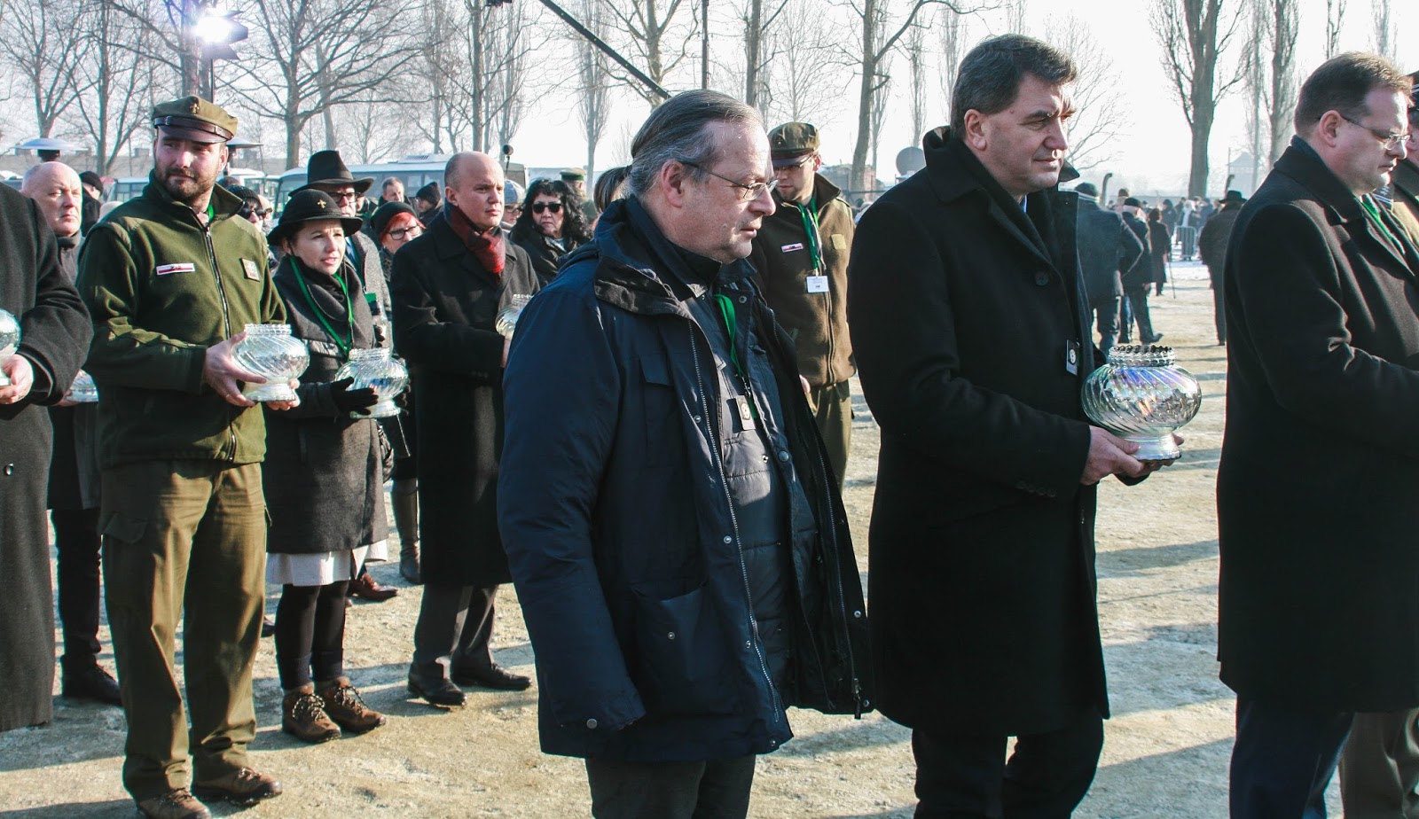 Anschließend nahmen die Delegationen an dern Feierlichkeiten des 72. Jahrestag der Befreiung der deutschen NS – Konzentrations- und Vernichtungslager Auschwitz-Birkenau teil. Mit Oswiecims Bürgermeister Janusz Chwierut trat Kai Kühnel als Vertreter der Stadt Dachau vor das Denkmal für die Opfer des ehemaligen Auschwitz II-Birkenau und stellten gemeinsam eine Gedenklicht ab.