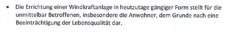 Was ist das jetzt wieder? Die unmittelbaren Betroffenen sind Anwohner, wieso insbesondere? Wird so aus einer Gruppe von Anwohnern eine zweite? Oder sind jene die mit dem Auto am Windrad vorbeifahren oder mit dem Flugzeug drüber fliegen auch eine unmittelbar betroffene Personengruppe?