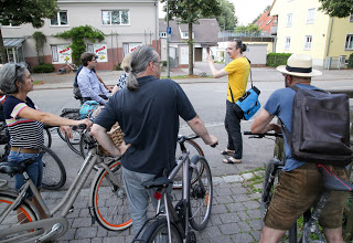 Einmal im Jahr fahren Stadträte mit einem Vertreter des runden Tisches Radverkehr verbesserungswürdige Verkehrsfühührungen im Stadtgebiet ab. Dieses Jahr waren neben dem OB 3 Teilnehmer des Bündnis, 2 von der SPD, sowie eine Vertreterin der CSU dabei.