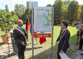 Heute wurde der Fondi-Park der Stadt Dachau offiziell von OB Florian Hartmann und Bürgermeister Salvatore De Meo eingeweiht. Der Park hinterhalb des Stadtteilzentrums Dachau-Ost wird noch gärtnerisch gestaltet. Fondis Bürgermeister kündigte ein entsprechendes Pendant in Fondi an: Park der Begegnung Dachau.