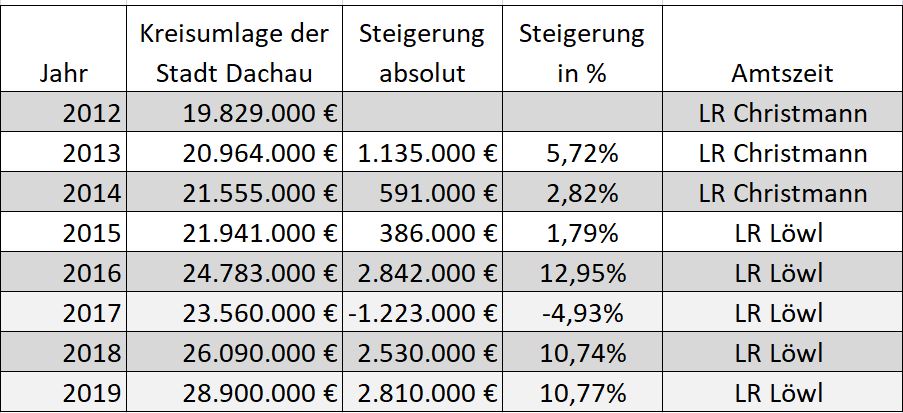 Innerhalb von 7 Jahren hat sich die Kreisumlage für die Stadt Dachau um gut 9 Millionen € erhöht. Die Raupe Nimmersatt frisst sich durch unseren Haushalt und nimmt uns jeglichen Gestaltungsspielraum. Der Landkreis kann sich für seine Prestigeobjekte bei uns Geld nach Belieben abholen, weil nur 6 Dachauer Kreisräte die Interessen der Stadt Dachau vertreten. 54 Kreisräte und 1 Landrat vertreten aber andere Interessen.