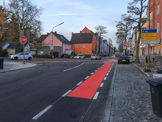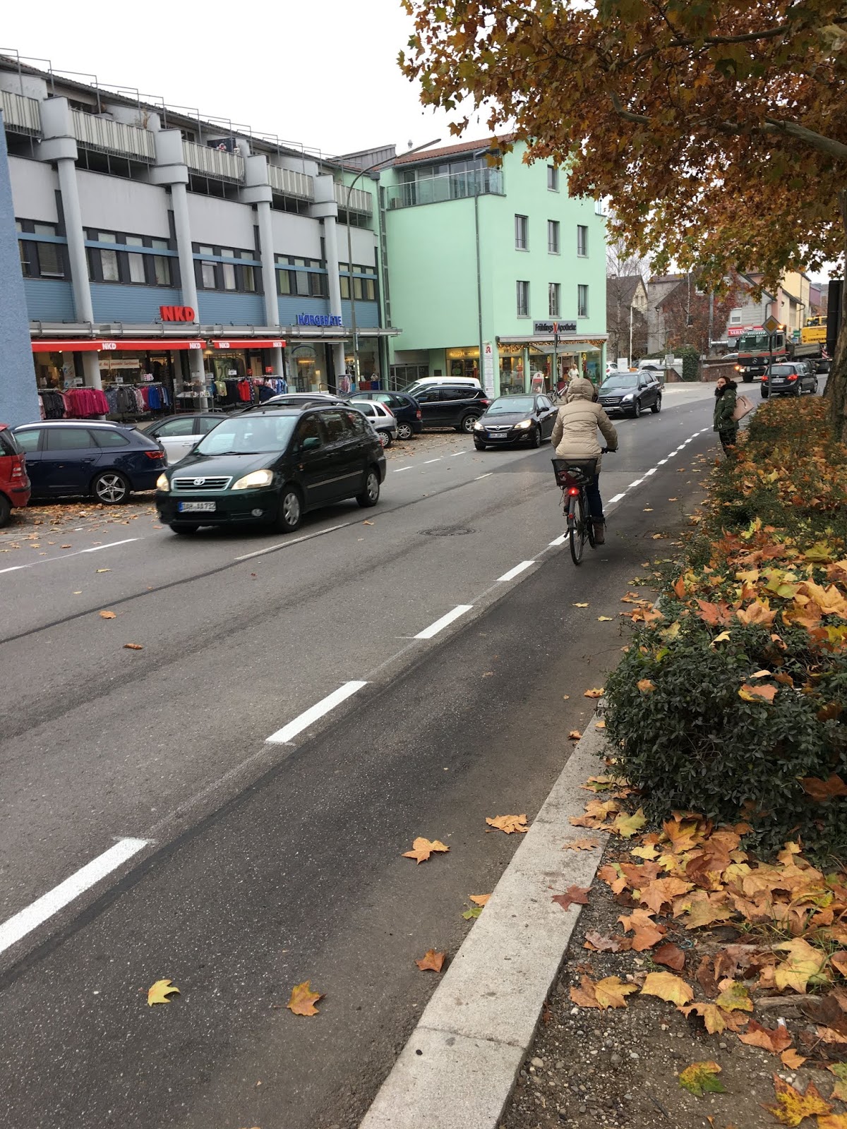 | Neuer Schutzstreifen auf der Frühlingstraße beim Bahnhof |