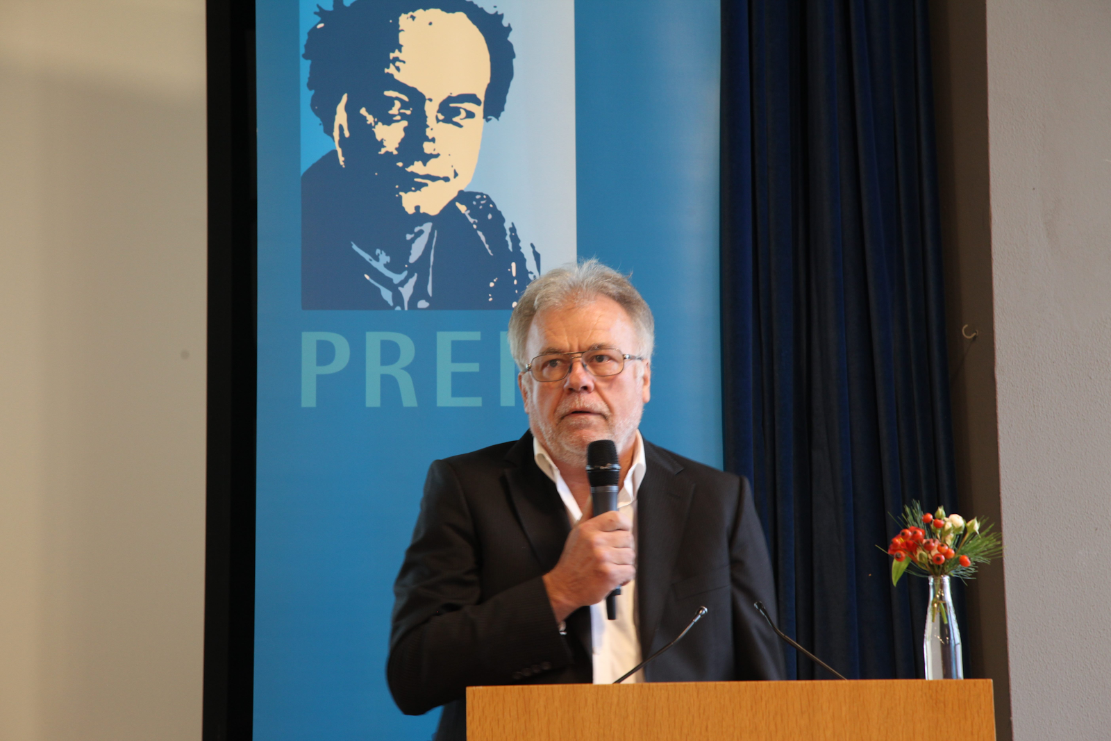 Dr. Thomas Binsack (Palliativmediziner), Kathrin Weidenfelder (Ver.di), Dr. Jürgen Zarusky (Historiker und Juror), Ulrike Mascher (SPD) und der Preisträger Claus-Dieter Möbs (v.l.n.r.)