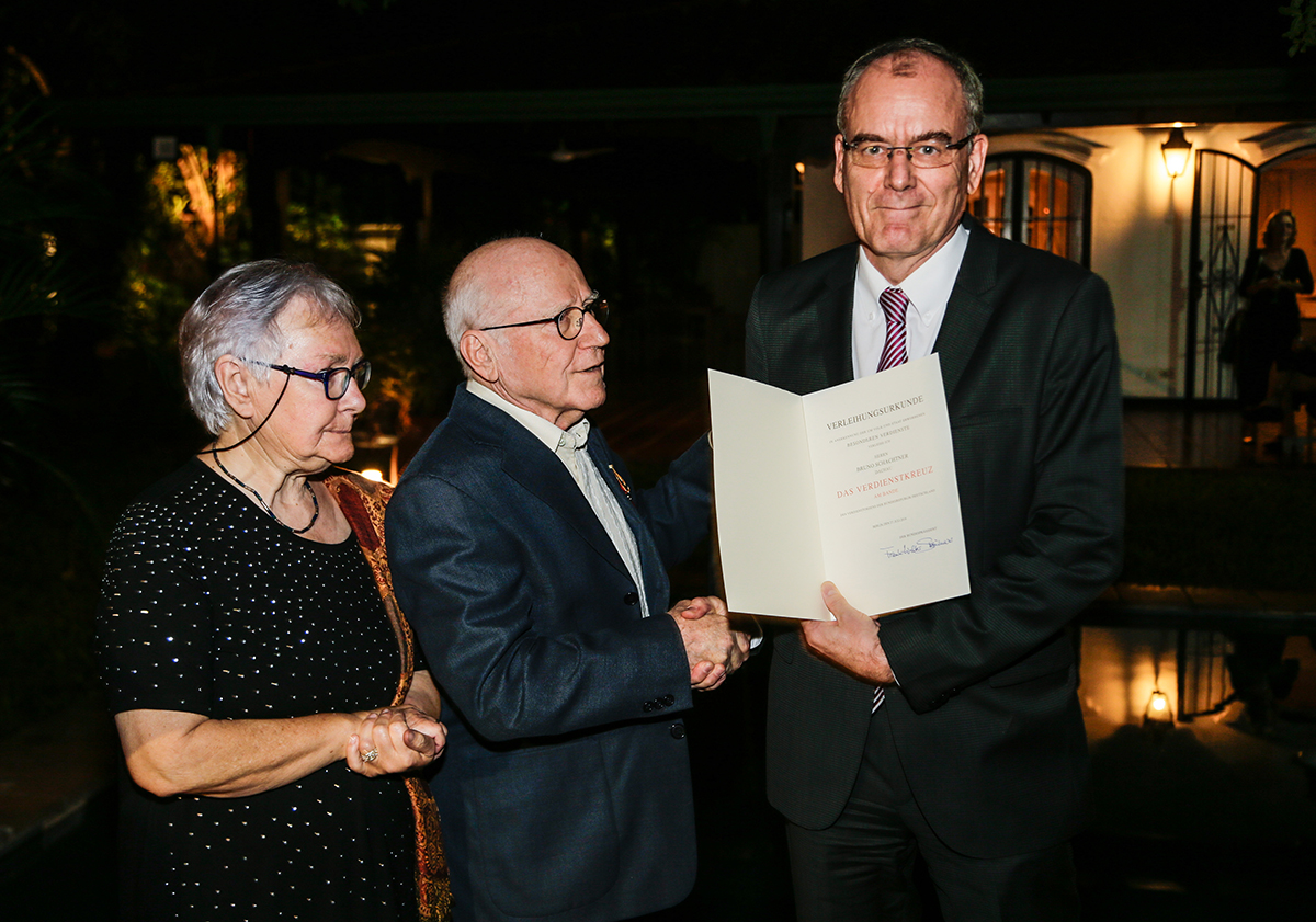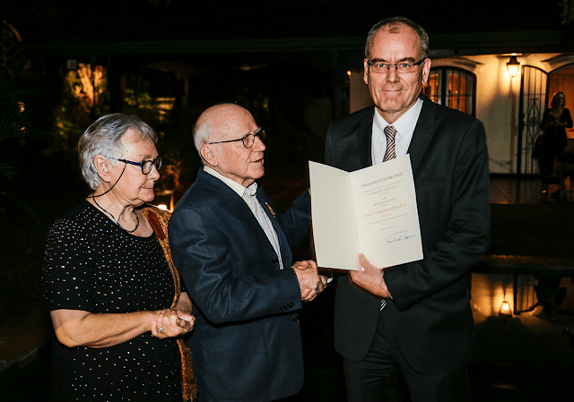 Am vergangenen Freitag, den 22.03.2019 wurde ihm die Auszeichnung vom deutschen Botschafter, Claudius Fischbach in Asuncion, Hauptstadt von Paraguay, für seinen Einsatz für verschiedenste kulturelle und gesellschaftliche Initativen und dem Austausch zwischen Paraguay und Deutschland – speziell Dachau – überreicht.