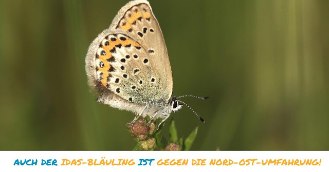 Der Idas-Bläuling ist eine wärmeliebende Schmetterlingsart und gehört zur Gruppe der Bläulinge. Anfangs ernährt sich die Raupe von Leguminosen wie Hornklee, Wundklee, Ginster etc. Die Raupe ist in Ihrer Entwicklung an Ameisen gebunden, welche deren Ausscheidungen verwerten und sie sogar gegen Fressfeinde verteidigen. Die Dachauer Vorkommen sind auch überregional von Bedeutung und fordern einen verantwortungsbewussten Schutz dieser seltenen Art. Die Biotope im Bereich der geplanten Umgehungsstraßen bilden einen Schwerpunkt der Populationen der Dachauer Schotterebene.