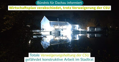 Allein diese Auflistung gibt einen Eindruck davon, wie weit sich die Dachauer CSU von einer konstruktiven Stadtratsarbeit entfernt hat. Dazu kommt, dass keine Vorschläge von der CSU zur Lösung von durchaus vorhandenen Problemen kommen – das ist der größten Stadtratsfraktion definitiv nicht würdig. Insbesondere die beharrliche Weigerung der Dachauer CSU den CSU dominierten Landkreis zur Finanzierung des Dachauer Busverkehrs in die Pflicht zu nehmen grenzt an grobe Fahrlässigkeit.