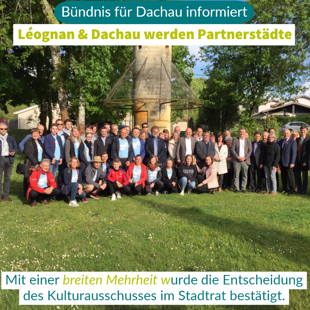 In der Stadtratssitzung vom 05.11.2019 stand eine durchaus historische Abstimmung auf der Tagesordnung: Léognan sollte Partnerstadt von Dachau werden – ein entsprechendes Angebot von Léognan liegt dazu vor. Der Stadtrat entschied sich mit großer Mehrheit von SPD, Grüne, ÜB, FDP, FW, Ullmann, Graßl (CSU) und dem Bündnis für Dachau dieses Angebot von Léognan anzunehmen und damit für eine neue Städtepartnerschaft!