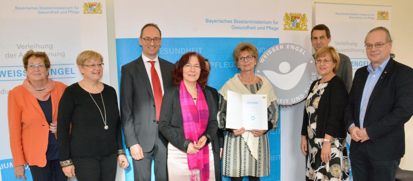 Elf Persönlichkeiten wurden heute in Schloss Nymphenburg in München mit dem „Weißen Engel“, der höchsten Auszeichnung des Bayerischen Gesundheits- und Pflegeministeriums geehrt: für ihr jeweils großes ehrenamtliches Engagement für kranke und/oder pflegebedürftige Menschen.