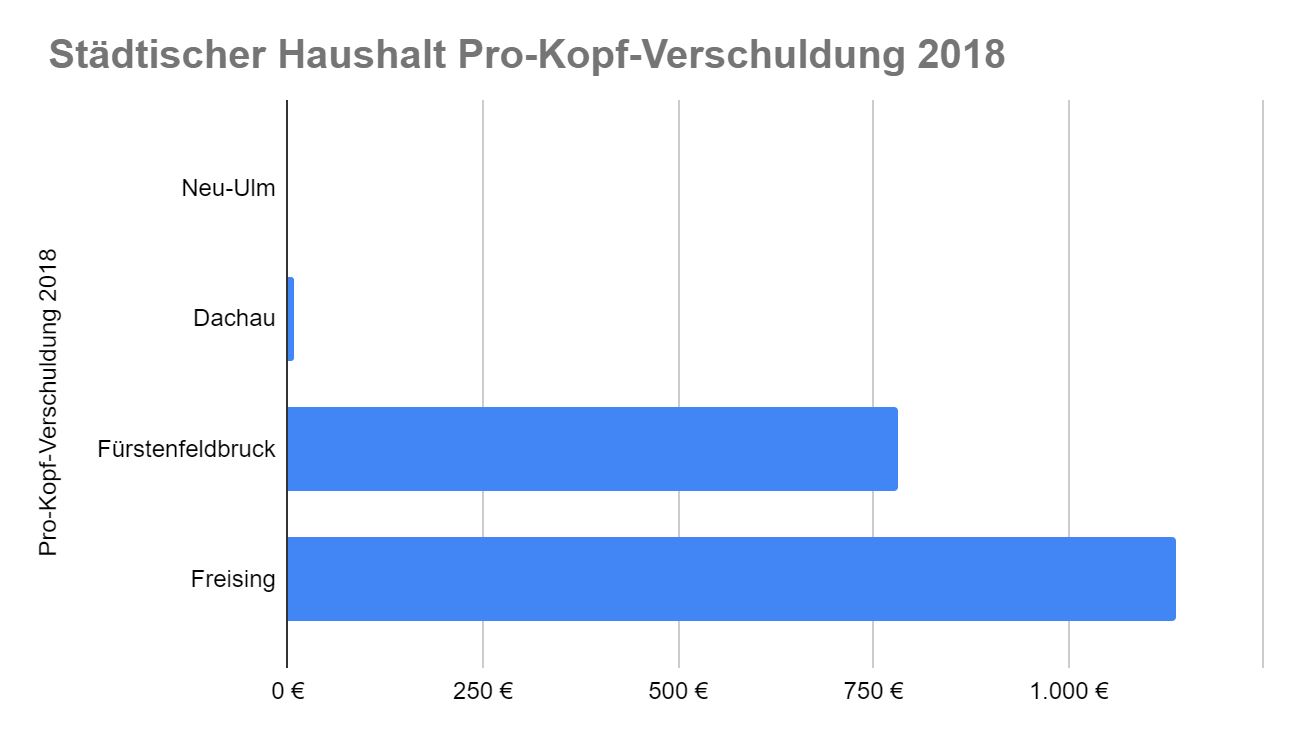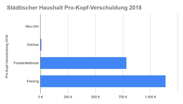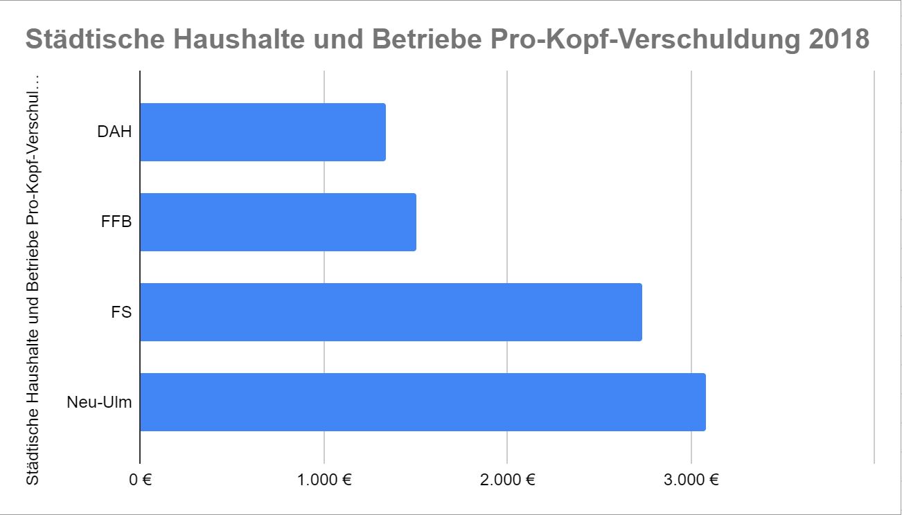 Aber auch wenn man die in die städtischen Betriebe „ausgelagerten“ Schulden hinzu addiert, braucht Dachau den Vergleich mit anderen Städten nicht scheuen. Besonders interessant ist hierbei die Betrachtung Neu-Ulm…