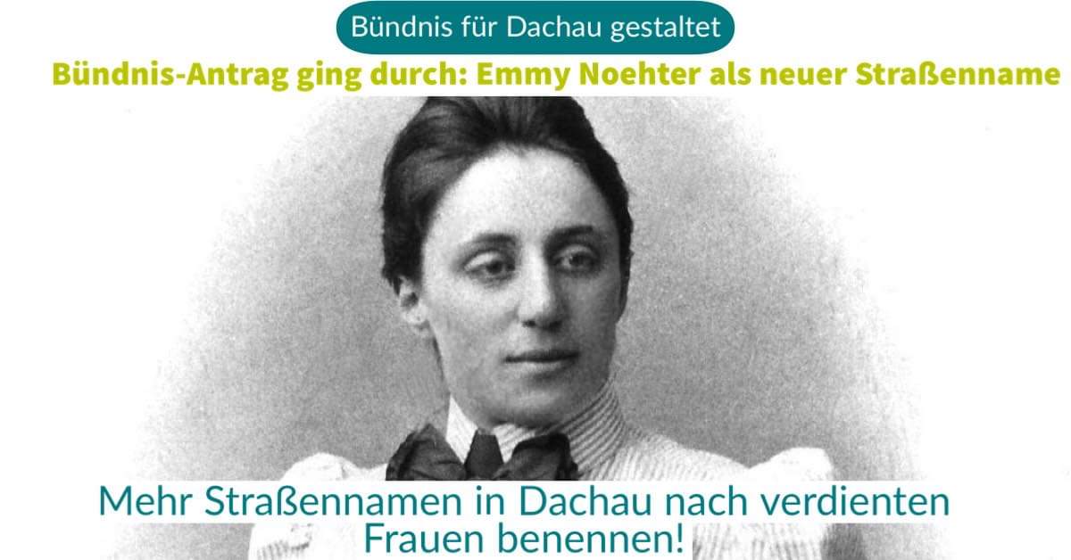 Das Bündnis für Dachau hat darum vorgeschlagen, die Straße nach der bedeutenden deutschen Mathematikerin Emmy Noehter (1882 – 1935) zu benennen.