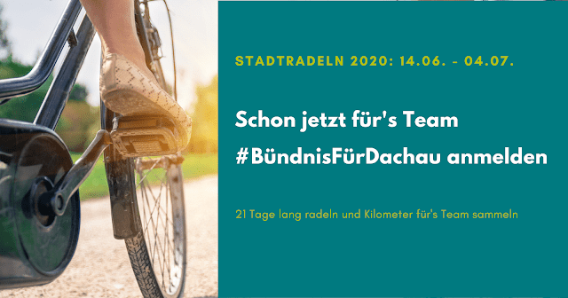 Servus Gemeinde! Vom 14. Juni bis zum 04. Juli startet wieder das Stadtradeln der Stadt Dachau. In 1 Woche geht es also los! Meldet euch jetzt im Bündnis Team an – jeder km zählt!