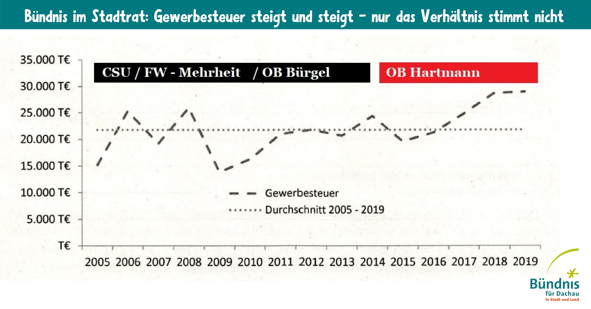 Die Einnahmen haben sich gegenüber dem Jahr 2005 fast verdoppelt. Man kann natürlich lamentieren die Kurve sei nicht steil genug. Man kann auch lamentieren, in 2021 und in den Folgejahren wird es wegen der Pandemie zu Gewerbesteuereinbrüchen kommen. Aber dem OB kann man die Verantwortung für die Pandemie nicht auch noch zuschieben.