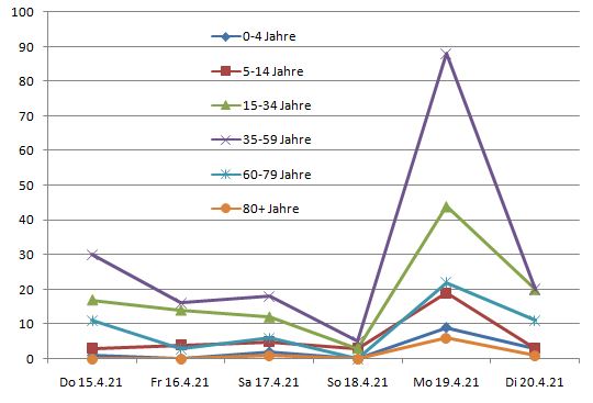 Der heftige Anstieg vom Montag ist wahrscheinlich auf einen Meldeverzug übers Wochenende zurückzuführen.