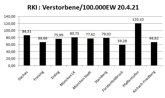 Im Vergleich mit den Nachbarlandkreisen liegen wir bei den Verstorbenen pro 100.000 Einwohner an 2. Stelle hinter Pfaffenhofen.