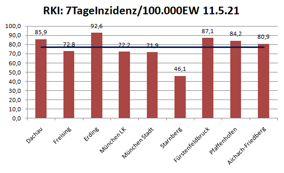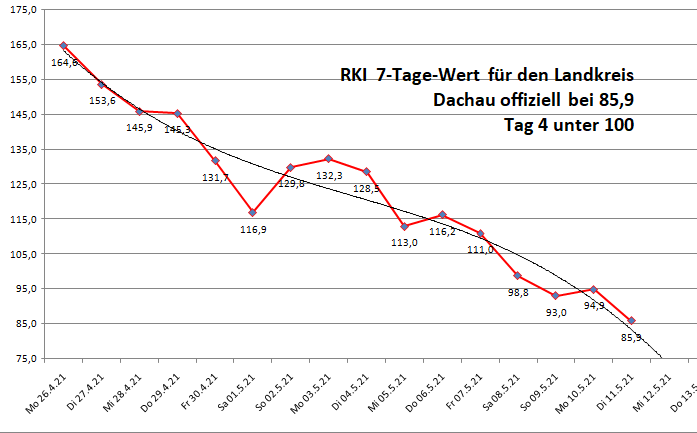 Damit sind wir in Dachau jetzt offiziell 4 Tage unter der 100er Marke. Starnberg ist bereits unter 50.