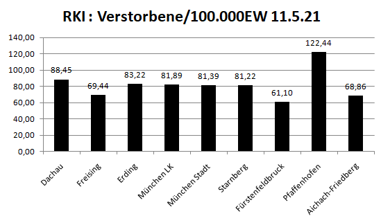 Im Vergleich mit den Nachbarlandkreisen liegen wir bei den Verstorbenen pro 100.000 Einwohner an 2. Stelle hinter Pfaffenhofen.