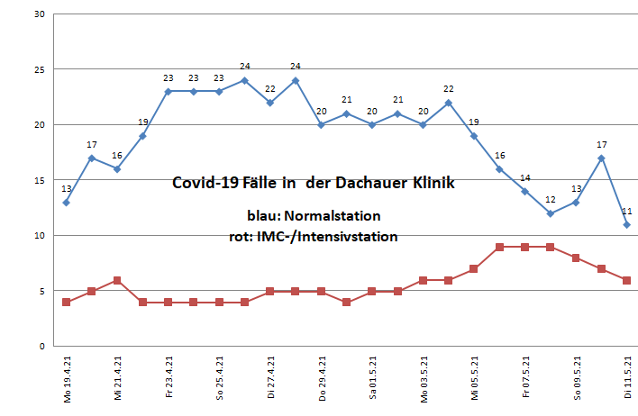 Die Zahl der Intensivpatienten ist rückläufig, die Patientenanzahl auf der Normalstation ebenfalls.