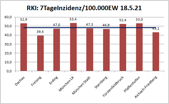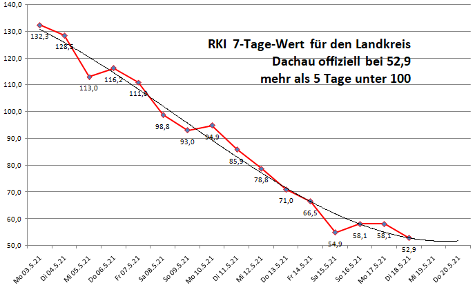 52,9 lautet der offizielle 7-Tage-Wert für den Dachauer Landkreis.