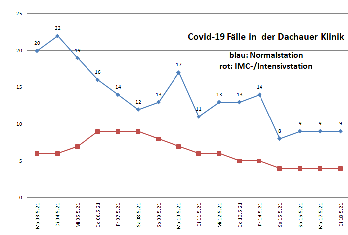 Die Zahl der Intensivpatienten ist stabil, die Patientenanzahl auf der Normalstation ebenfalls.