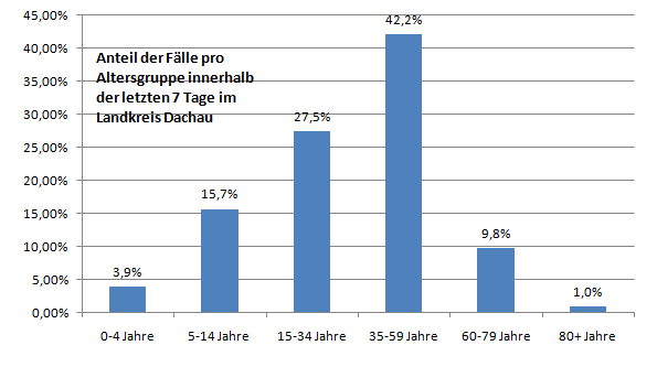 Im Landkreis sind im Moment Sulzemoos und Röhrmoos die Gemeinden mit der höchsten pro Kopf Zahl an Infizierten. Die Stadt Dachau liegt exakt im Schnitt.