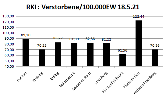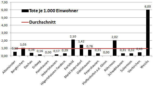 Im Vergleich mit den Nachbarlandkreisen liegen wir bei den Verstorbenen pro 100.000 Einwohner an 2. Stelle hinter Pfaffenhofen.