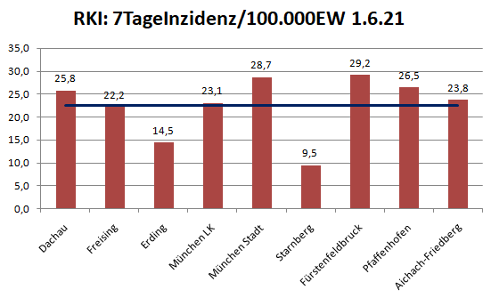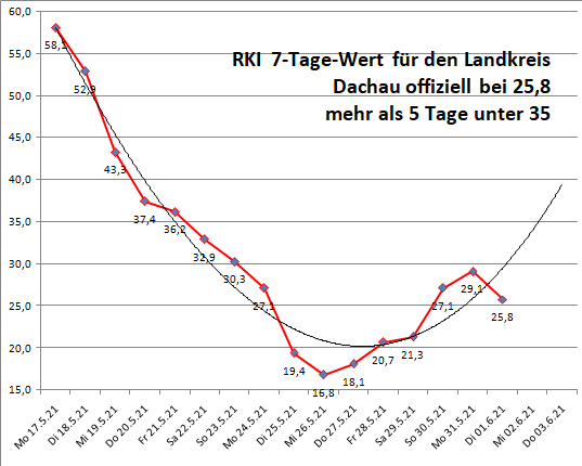 25,8 lautet der offizielle 7-Tage-Wert für den Dachauer Landkreis.