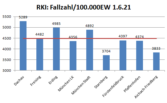 Der Landkreis Dachau liegt diese Woche im Mittel der Nachbarlandkreise.