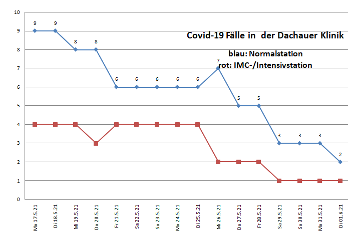 Die Zahl der Intensivpatienten ist rückläufig, die Patientenanzahl auf der Normalstation ebenfalls.
