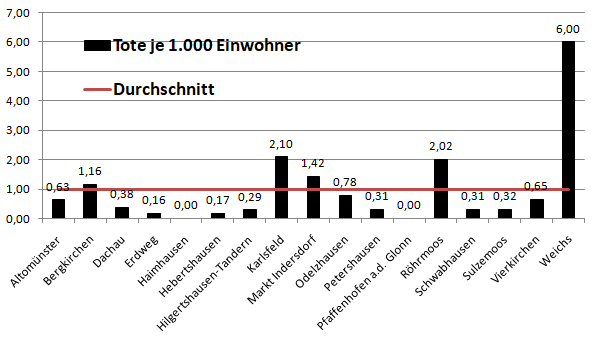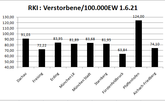 Im Vergleich mit den Nachbarlandkreisen liegen wir bei den Verstorbenen pro 100.000 Einwohner an 2. Stelle hinter Pfaffenhofen.