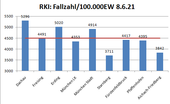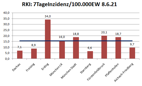 Der Landkreis Dachau liegt diese Woche mit 7,1 unter dem Mittel der Nachbarlandkreise (15,5). Damit sind wir jetzt nahe dran am Vorzeige-Landkreis Starnberg.