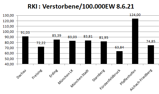 Im Vergleich mit den Nachbarlandkreisen liegen wir bei den Verstorbenen pro 100.000 Einwohner an 2. Stelle hinter Pfaffenhofen.