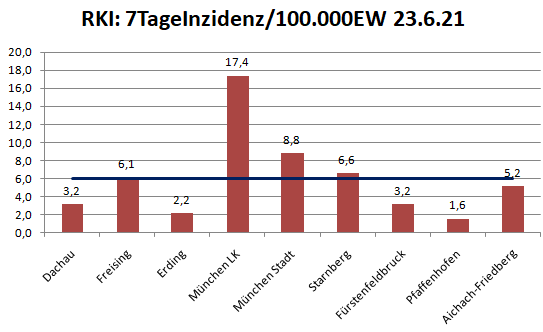Der Landkreis Dachau liegt diese Woche mit 3,2 unter dem Mittel der Nachbarlandkreise (6,0).