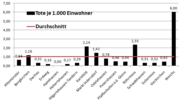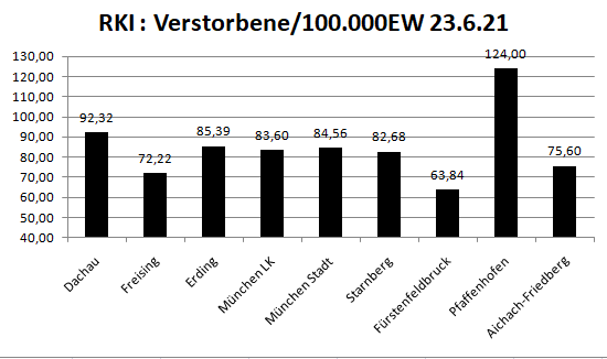 Im Vergleich mit den Nachbarlandkreisen liegen wir bei den Verstorbenen pro 100.000 Einwohner an 2. Stelle hinter Pfaffenhofen. Warum das so ist, bleibt ungeklärt.