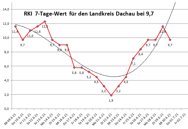 Bei 9,7 liegt die aktuelle 7-Tage-Inzidenz