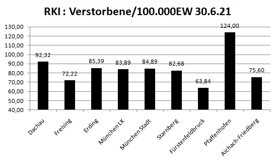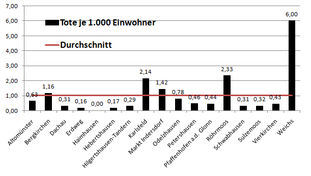 Im Vergleich mit den Nachbarlandkreisen liegen wir bei den Verstorbenen pro 100.000 Einwohner an 2. Stelle hinter Pfaffenhofen. Warum das so ist, bleibt ungeklärt.