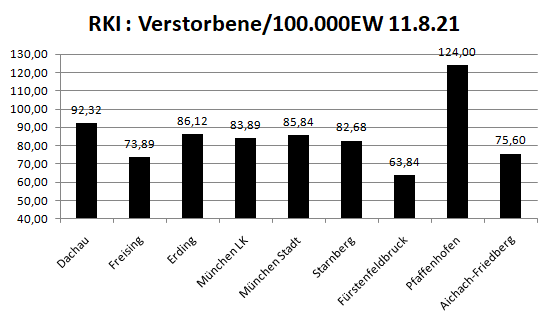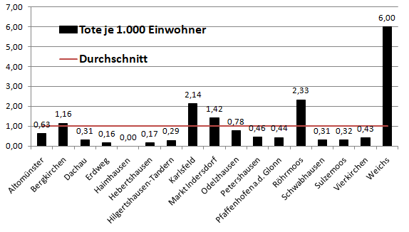 Im Vergleich mit den Nachbarlandkreisen liegen wir bei den Verstorbenen pro 100.000 Einwohner an 2. Stelle hinter Pfaffenhofen. Warum das so ist, bleibt ungeklärt.