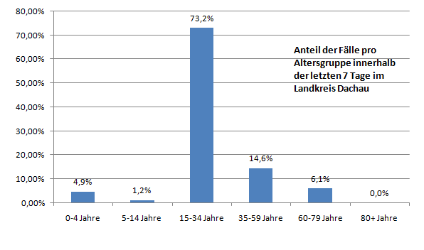 Schwabhausen und Erdweg übernehmen bei den relativen Zahlen den Spitzenplatz, woran das liegt wird nicht erklärt. Wieder wird als Ursache für den Anstieg der letzten Tage auf ein Festival in Kroatien verwiesen.